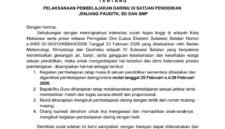 Hierarkinews, MAKASSAR – Pemerintah Kota Makassar melalui Dinas Pendidikan menerbitkan surat edaran tentang pelaksanaan pembelajaran daring untuk jenjang PAUD/TK, SD, dan SMP selama 4 hari, 25 – 28 Februari 2026.