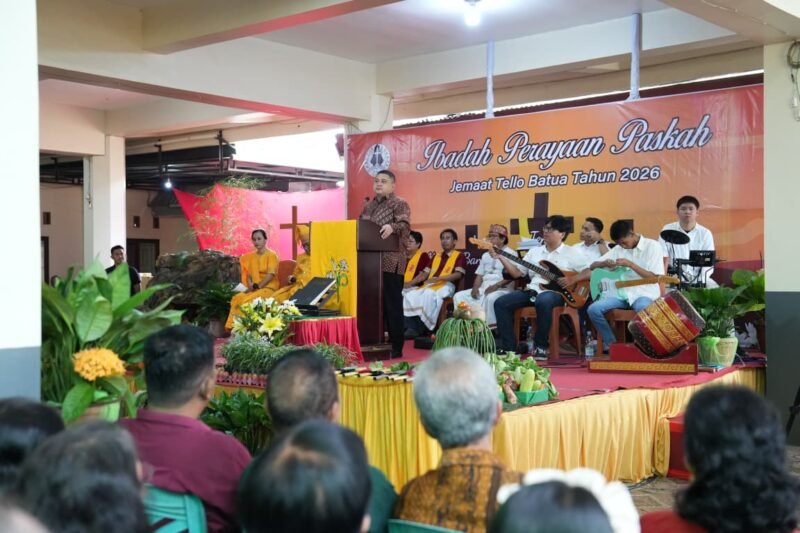 Hierarkinews, MAKASSAR – Wali Kota Makassar, Munafri Arifuddin, menghadiri Perayaan Paskah di Gereja Jemaat Tallo Batua, Minggu (5/04/2026). Pada kesempatan tersebut Ia menekankan pentingnya peran rumah ibadah dalam mendorong pertumbuhan ekonomi dan kesejahteraan masyarakat.