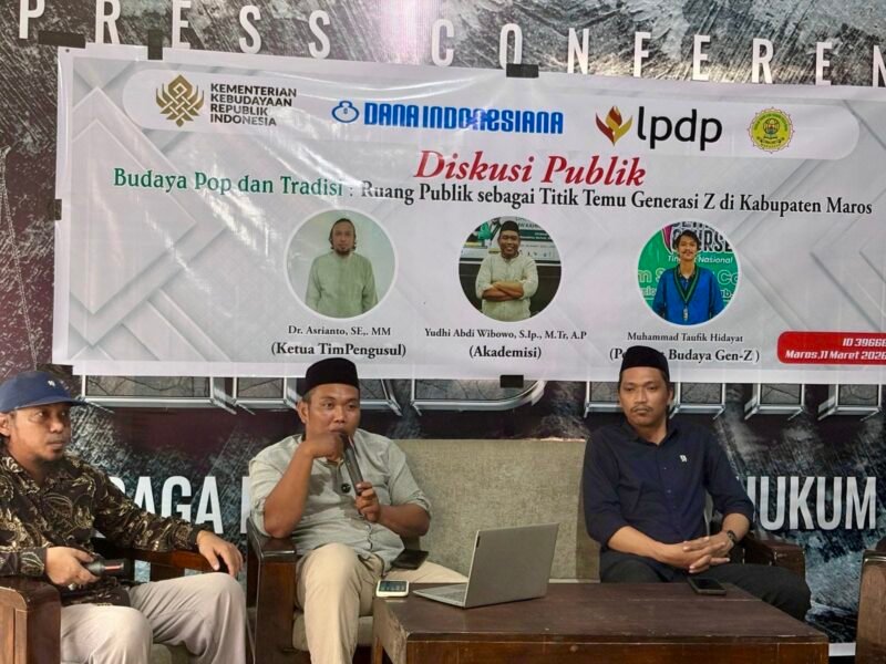 Hierarkinews, MAKASSAR — Sebuah diskusi publik bertema “Budaya Pop dan Tradisi: Ruang Publik sebagai Titik Temu Generasi Z di Kabupaten Maros” digelar sebagai wadah pertukaran gagasan mengenai dinamika budaya anak muda dan pelestarian tradisi lokal. Kegiatan ini menghadirkan dua narasumber utama, yaitu akademisi Yudhi Abdi Wibowo dan penggiat budaya generasi Z Muhammad Taufiq Hidayat.