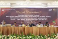 Hierarkinews, Wajo — Komisi Pemilihan Umum (KPU) Kabupaten Wajo Sulawesi selatan Melaksanakan Rapat Koodinasi Persiapan Pendaftaran kelompok penyelenggara pemungutan suara (KKPS) di Gedung Darmawan…