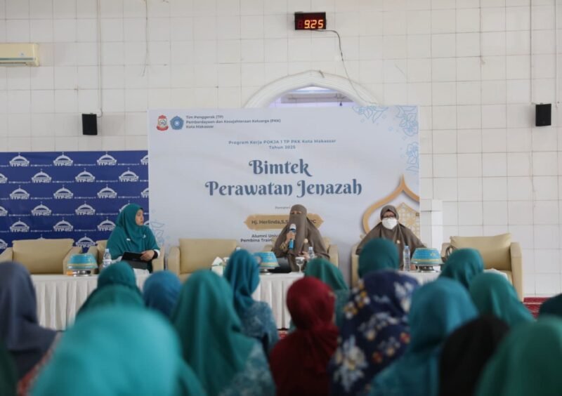 Hierarkinews, MAKASSAR – TP PKK Kota Makassar menggelar bimbingan teknis (bimtek) perawatan jenazah bagi kader TP PKK dan kader pemandi jenazah se-Kota Makassar, berlangsung di Masjid Agung 45 pada Kamis (14/8/2025).