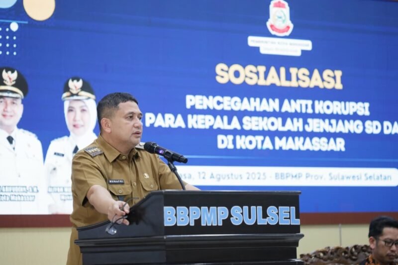 Hal ini disampaikan saat membuka kegiatan Sosialisasi Edukasi Anti-Korupsi bagi 400 kepala sekolah SD dan SMP se-Kota Makassar, di Aula BBPMP Sulsel, Selasa (12/8/2025).